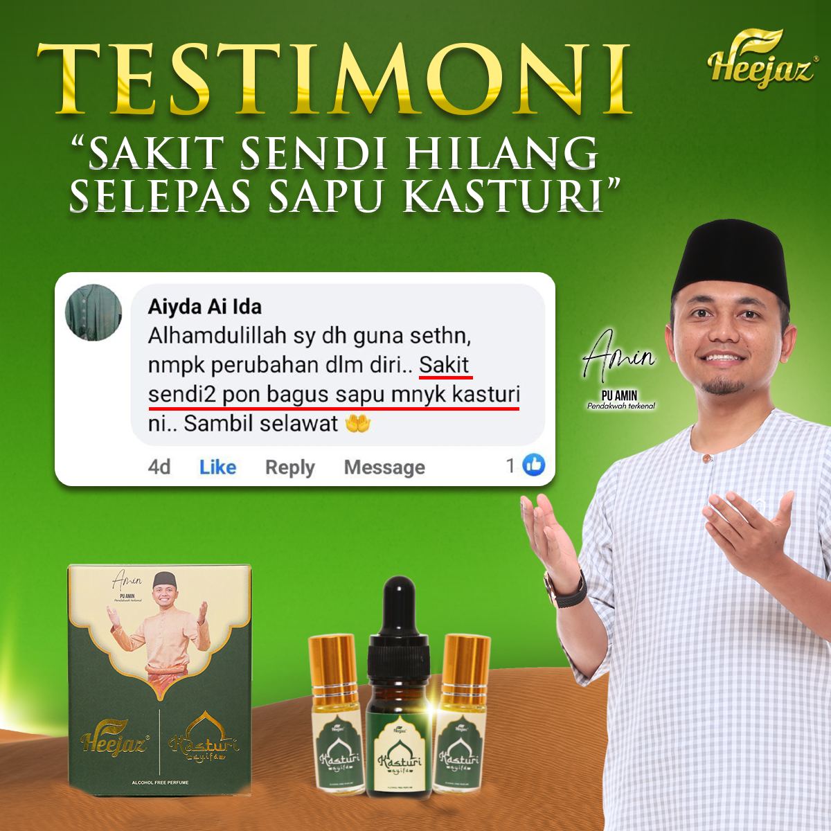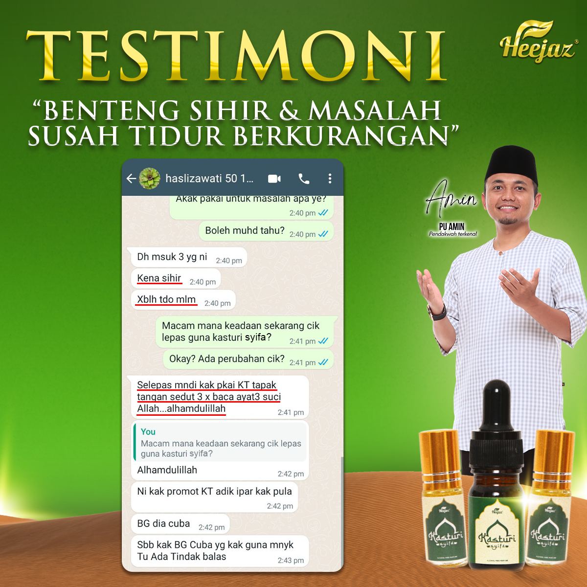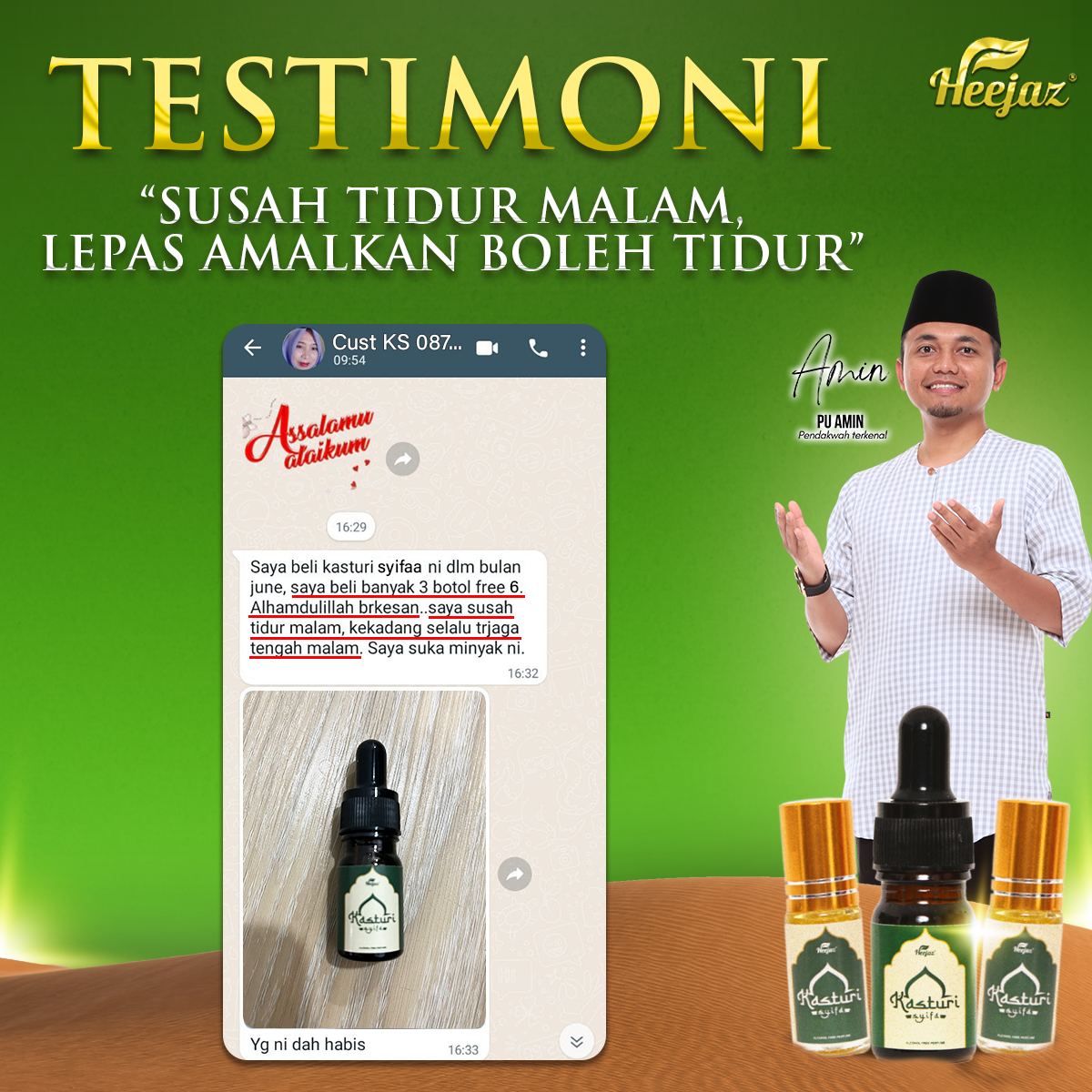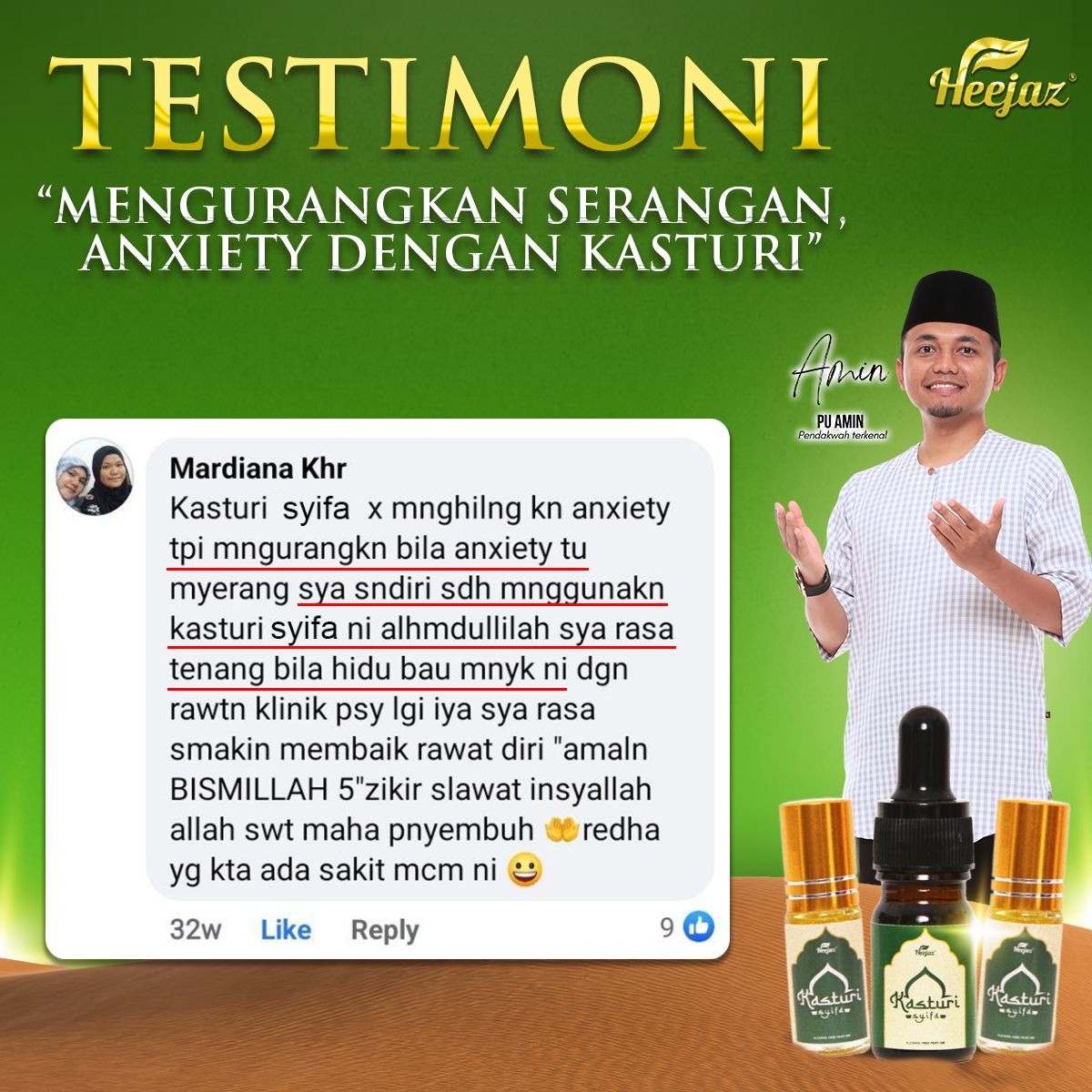 “Anak saya dulu degil sangat, lepas amalkan kasturi ni makin lembut hati.”