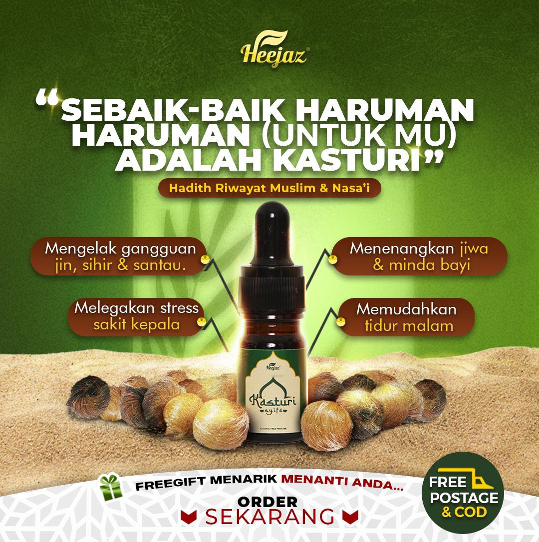 Kasturi yang diformulasi khas sebagai minyak calit ruqyah, membantu menenangkan anak-anak & orang dewasa dengan aroma terapi semulajadi.